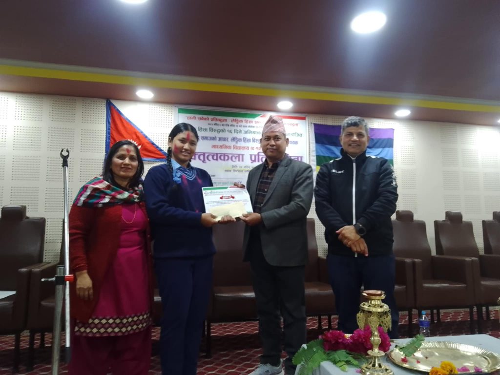Kriti Shrestha, student of grade 9 from Neelakantha Balmandir Secondary School has got first position in the Elocution Competition organized by Shrot Parichalan Cooperative Ltd., Dhading held in Dhading Besi.